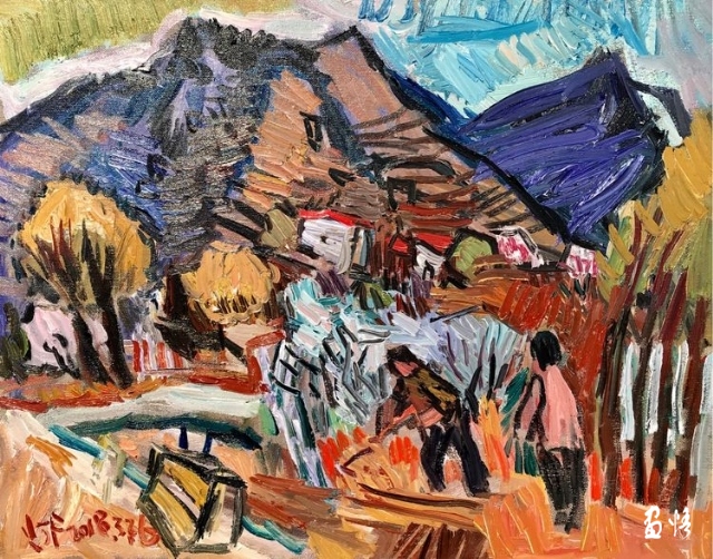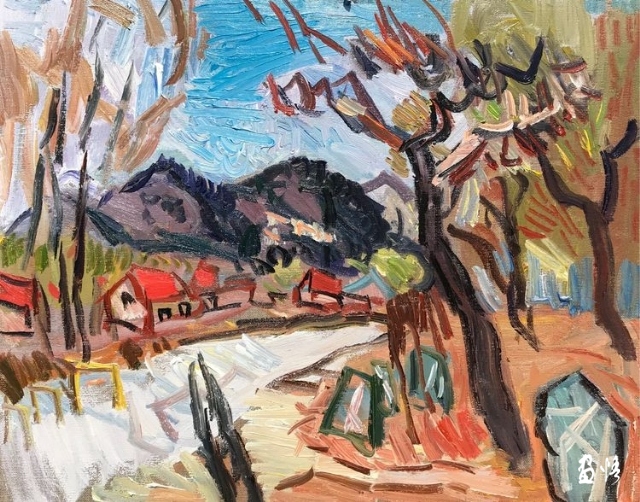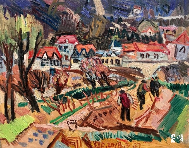 印象派畫的是"有時間 ",古典主義畫的是"沒時間"。印象派是畫落在視網(wǎng)膜上的瞬間,是視網(wǎng)膜藝術(shù),是奮力的快速客觀描摹,來不及珍重蒙馬特街和睡蓮們,印象派要的是不同時間的蒙馬特和睡蓮們。楊繼鋒的快,是為了對眼前的山川屋舍道一聲珍重,是主觀的"內(nèi)在時間",是"中國時間"。