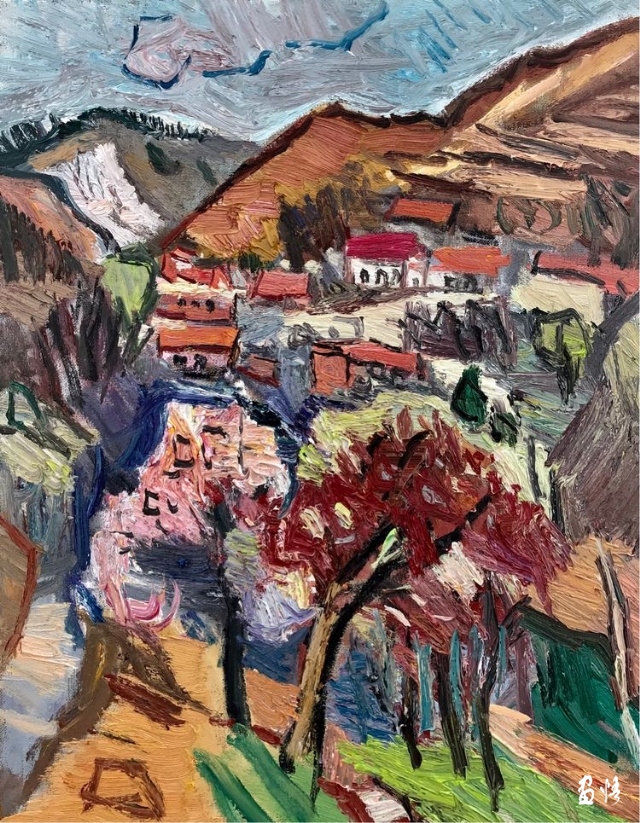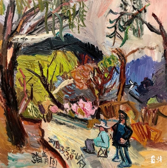 楊繼鋒寫生過程中的體驗,是一種書寫性的暢快。沒有過往牽絆,沒有憂思未來,只有此刻的豐盈!這種豐盈如同陽光下,飽飽的一粒谷子,圓的扣不住扣子,圓的沉甸甸的毫無棱角,圓的自己忍不住給自己一個帶著雙下巴的笑。但,又明晰自己正腳踏著實地,隨時落筆生花。