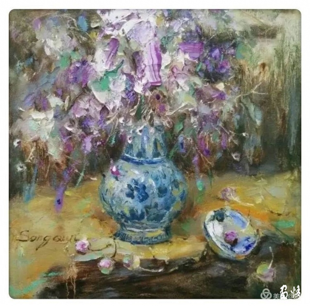 丁香花在畫布上盛開著,她會在我的畫室里,永遠(yuǎn)地盛開著。