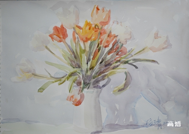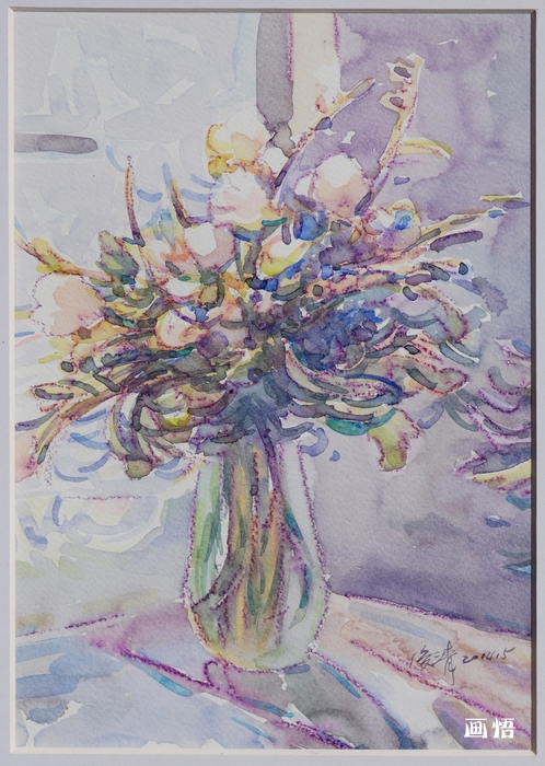 黃俊清 | 《室內(nèi)的小花束》 | 紙上水彩