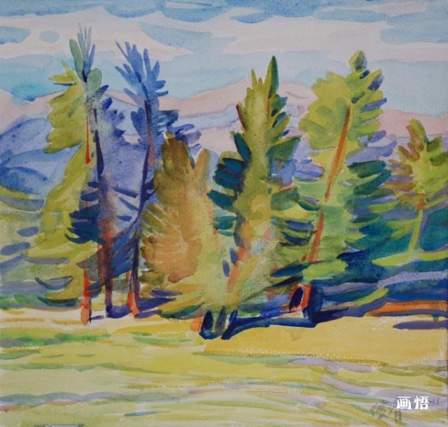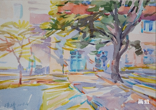 最初見到黃俊清先生的水彩作品是在一家茶室里,畫面上風(fēng)景秀麗的樹林、熟悉的廈門大學(xué)嘉庚建筑、醒目的紅屋頂讓人突然眼前一亮,心情為之愉悅,而這正是黃俊清喜歡的畫風(fēng)。他的作品是安靜的,就像他熱愛的生活一樣,他創(chuàng)作的題材以風(fēng)景為主:寬廣的大海、遼闊的天空,還有校園里的樹木、紅房頂、流動(dòng)的云彩,這些都是他身邊最熟悉的景色。 將碎片時(shí)間變成一幅幅畫 如果說(shuō)油畫帶給黃俊清的是專業(yè)的訓(xùn)練,那么水彩帶給他更多的是一種樂(lè)趣。從廈門大學(xué)美術(shù)系畢業(yè)以后,他以第一名的成績(jī)留校工作,因并不執(zhí)教美術(shù),他的時(shí)間幾乎全在學(xué)生工作上,業(yè)余時(shí)間少且零碎,油畫所需使用的工具多、耗時(shí)長(zhǎng),他不得不停下油畫的創(chuàng)作,有空時(shí)只畫簡(jiǎn)單的鋼筆速寫,然而五年前的一場(chǎng)西北之行卻從此改變了他人生繪畫的軌跡。
