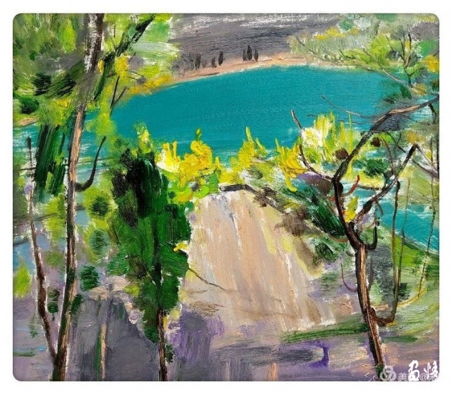 靜怡的時(shí)光,安靜的畫(huà)畫(huà)。就這樣享受這個(gè)過(guò)程,享受這一天。就這樣悠悠然然地做著自己喜歡的事兒,寫(xiě)著畫(huà)著,畫(huà)著寫(xiě)著,看葉兒綠了又黃,看花兒開(kāi)了又落??达L(fēng)兒把枯枝涂抹成蔥蘢,看晚霞把青山披一身錦繡。讓日子,就這么一山一水一粥一飯的過(guò)著,一邊畫(huà)畫(huà),一邊長(zhǎng)大。就這么守望著青山,堅(jiān)守著藝術(shù)。