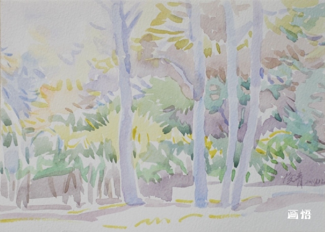 透過樹林的光 水彩25X25cm保定220g2012年