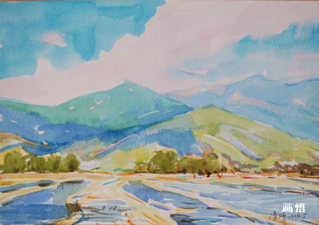 有水的山景 紙上水彩25X18cm 2014年