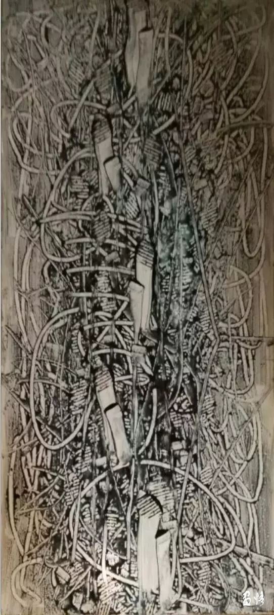 《一帶一路的艱難》木板水墨抽象畫 120x240cm
