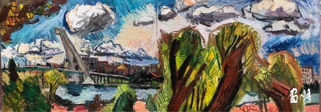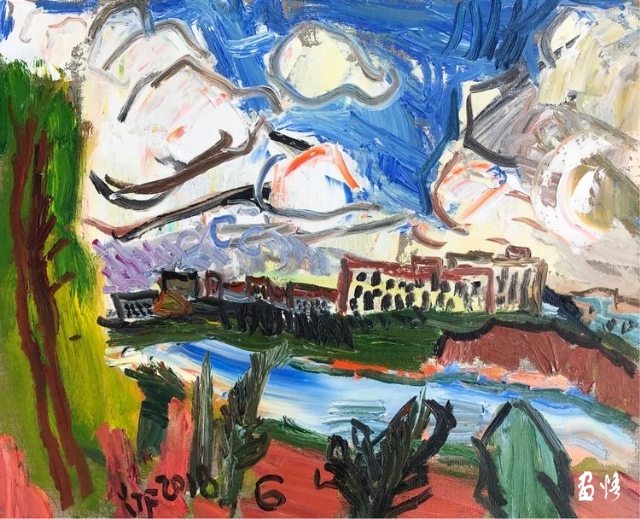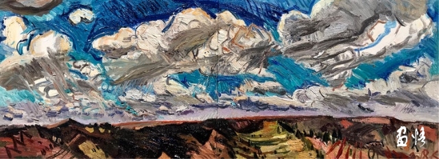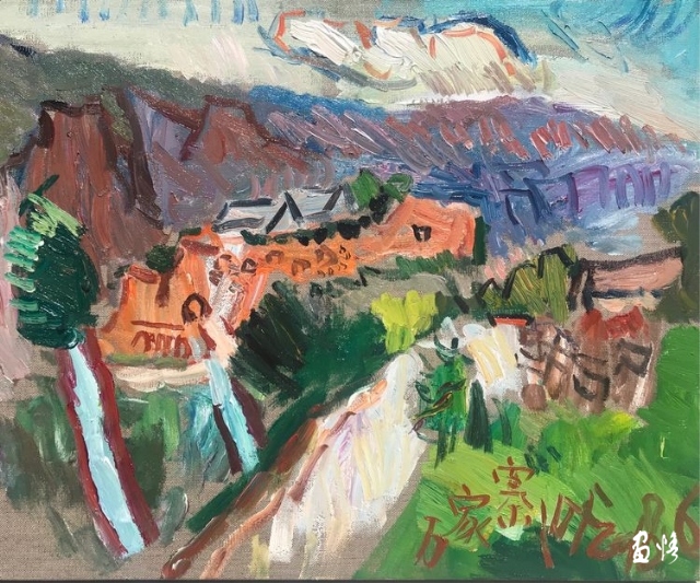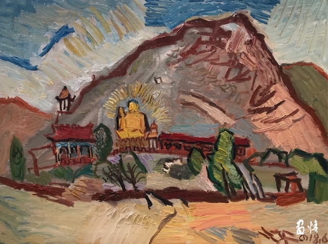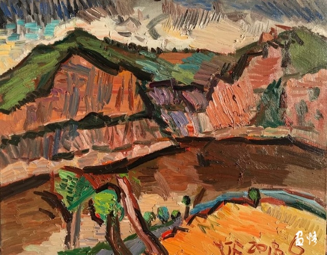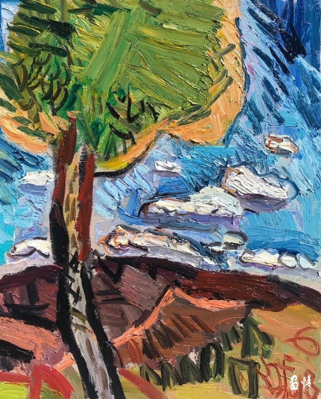 楊繼鋒酷愛藝術(shù),他幾乎把繪畫當作自己的全部生活。正是由于有著象梵·高那樣"渴望生命"的懷想,他才一次又一次走向大地,走進自然的懷抱,在那里奮筆抒發(fā),留下一幅幅貫注了充沛感性、飽蘸濃墨重彩的作品。在王克舉先生主持的以"寫意精神"為主旨的油畫研究群體中,他堪稱一員猛將,不善言辭能吃苦,不畏艱辛敢拼博。依我簡論,在三個方面尤其凸顯出他的意志與毅力:一是他能長期在寫生上沉下心來,在東往西去、走南駐北的寫生之旅中,都有他在團隊中的堅守。無論在怎樣的地理、場景、氣候中寫生,他總是不計條件,埋頭作畫,專注投入,所畫作品難以計數(shù),以"量"的積累達到"質(zhì)"的提高。二是在克舉先生的指導下,他掌握了油畫寫生的要領(lǐng),注重把握重點,概括自然物象的形貌,形成富有節(jié)奏的畫面布局。他尤其抓住色彩表現(xiàn)力這個語言,在感受自然色彩的基礎(chǔ)上提高色彩的純度、明度和強度,將自然風景的色彩關(guān)系轉(zhuǎn)換為畫面色彩的結(jié)構(gòu),以此為主導統(tǒng)攝畫面,形成以色彩為關(guān)鍵詞的敘事。在色彩的感性方面,他顯露出優(yōu)秀的秉賦。三是在"寫意"這個課題上不斷加深認識,將油畫寫生的直接性與臨場表達的表現(xiàn)性結(jié)合起來,在畫面構(gòu)成上突出平面感,形成富有張力的畫面空間,在運筆上更是縱橫恣意,用極為隨性放松的點、線、面組合交織,使筆意、肌理與色調(diào)、造型渾然一體,展現(xiàn)出"寫"的生動性和"意"的豐富性。觀賞他的作品,一種"天人合一"的精神屬性了然在目,一種"直抒性情"的快意也呯然感人。