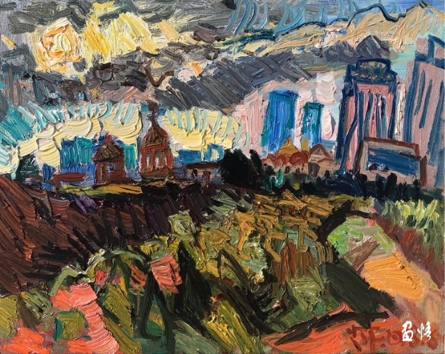 他熱愛凡高把凡高的精神,融入在自己的作品里,表現(xiàn)了他對生活,對藝術(shù)的無限熱愛。他激烈的筆觸,豐富的色彩,厚重的情懷使畫面非常具有感染力。面對楊繼鋒的作品,觀者經(jīng)常能夠體會到畫家對現(xiàn)實世界的自我主張。畫面中情緒激動,色彩和筆觸都像是在激烈的旋律中舞動。 傅寅羿