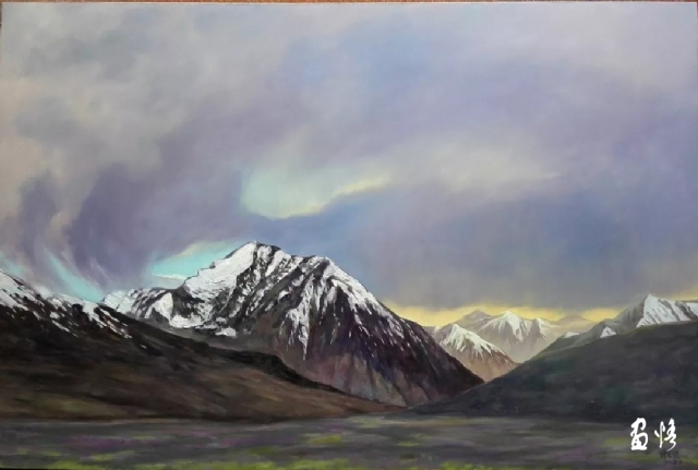 林文德多次奔波于昆侖之源的帕米爾高原,著手寫生創(chuàng)作“望昆侖”系列油畫作品,歷時(shí)三年有余,耗費(fèi)一千多個(gè)日日夜夜,完成作品逾八十幅。林文德筆下傾注心力描繪的昆侖山源頭南疆喀什、到塔斯庫(kù)爾干、紅其拉甫一帶,恰是古代絲綢之路的必經(jīng)通道,也是處于當(dāng)下“一帶一路”國(guó)家倡議規(guī)劃的中巴鐵路沿線上,屬于典型的一帶一路繪畫藝術(shù)作品。