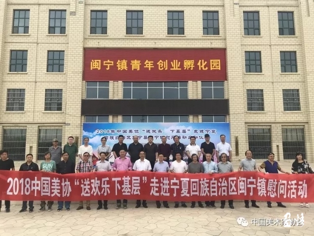 為深入貫徹落實(shí)黨的十九大精神,踐行習(xí)近平新時(shí)代中國特色社會(huì)主義思想以及習(xí)近平總書記有關(guān)文藝工作的系列講話精神,引導(dǎo)廣大文藝工作者牢固樹立以人民為中心的創(chuàng)作導(dǎo)向,中國美協(xié)于6月29日—7月5日赴寧夏回族自治區(qū)閩寧鎮(zhèn)開展“送歡樂 下基層”活動(dòng),用實(shí)際行動(dòng)慶祝黨的97歲生日。慰問團(tuán)由杜松儒、王雪峰、祁海峰、楊國新、曠小津、孫維國、何加林、陳湘波、梁明、王新倫、林容生、方向、王利軍、周剛、王劍武、謝巖、倪春林、孫劍、黃伯君等來自全國各地的美術(shù)名家組成。
