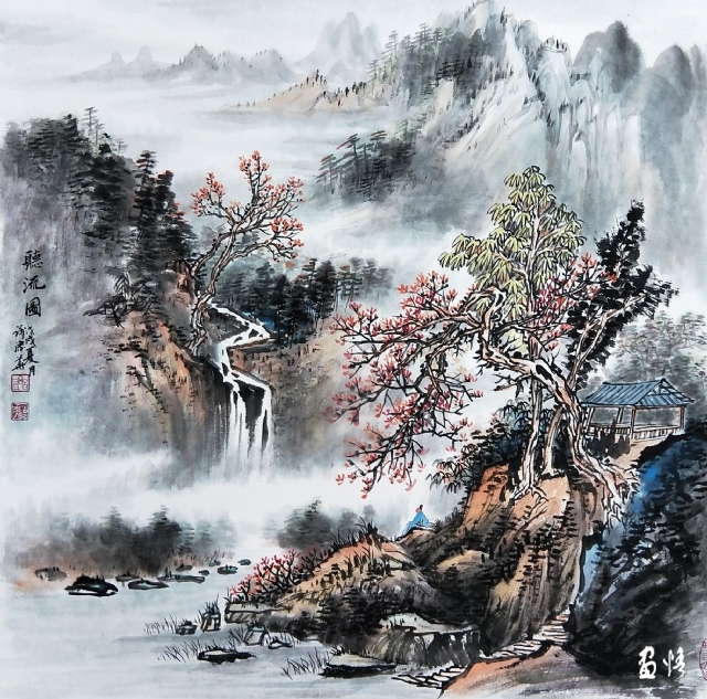 聽(tīng)瀑圖 58X58cm