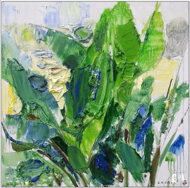 作品名稱:逆光的芭蕉樹(shù) 尺寸:60cmx60cm 創(chuàng)作年代:2018.6