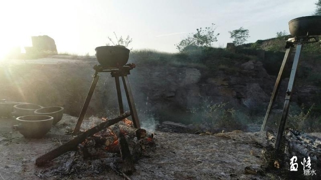 這樣,藝術(shù)家取得了四件作品和一堆碎片及一口藍(lán)鍋,一個(gè)現(xiàn)場的作品出來了。