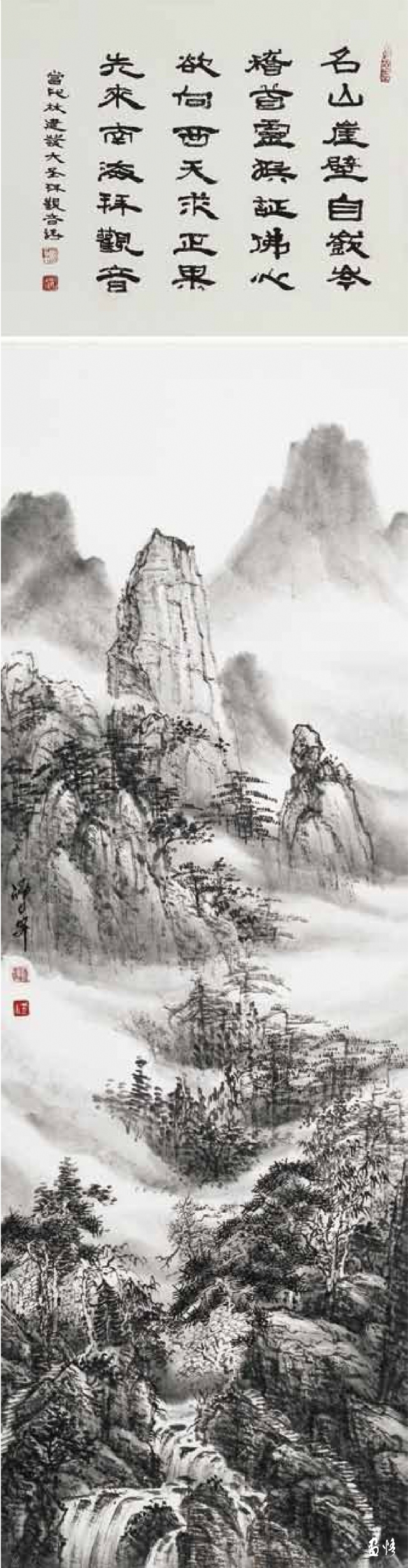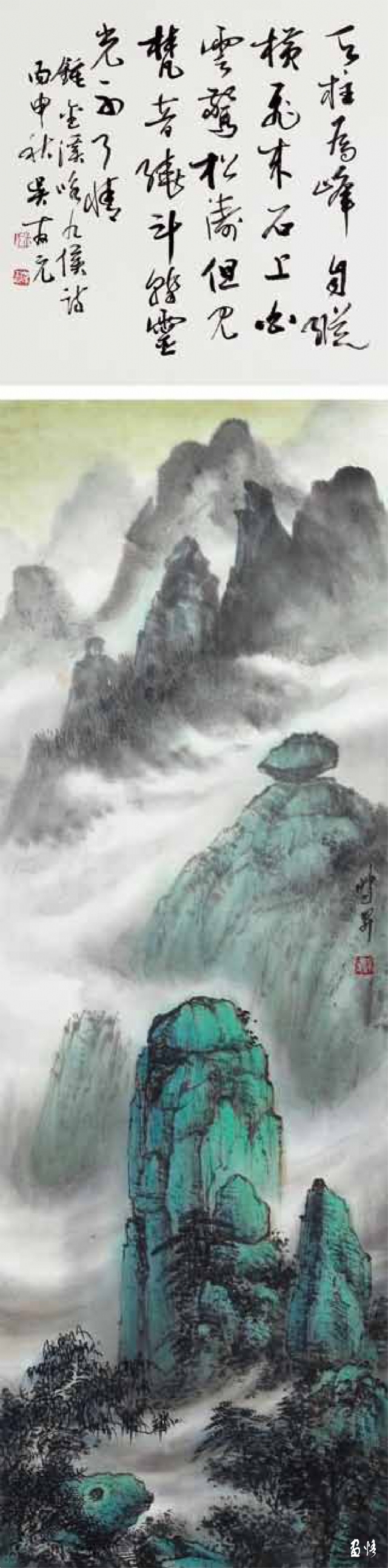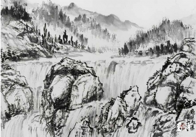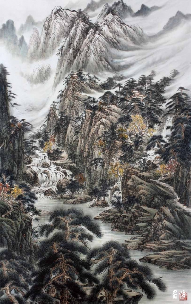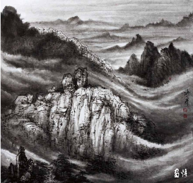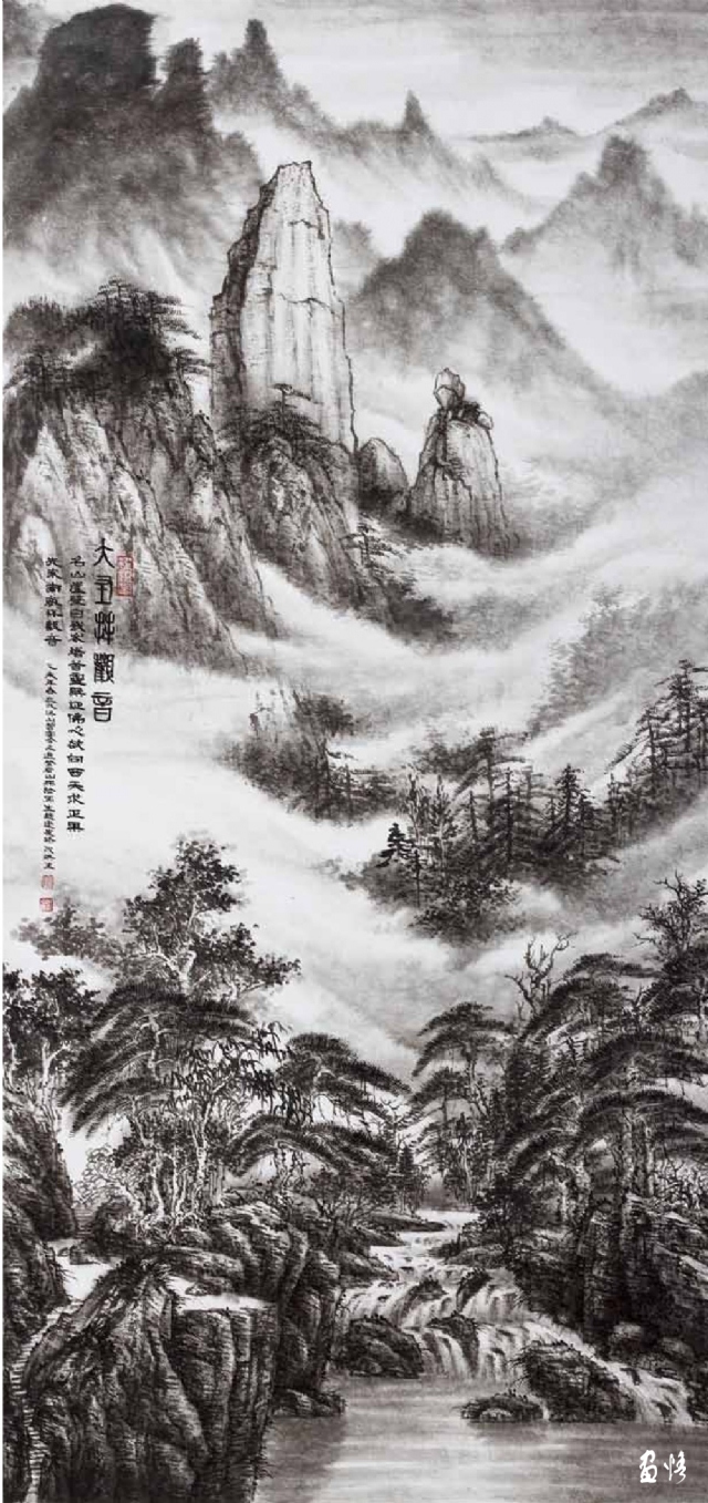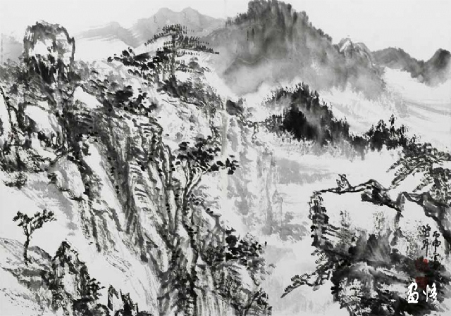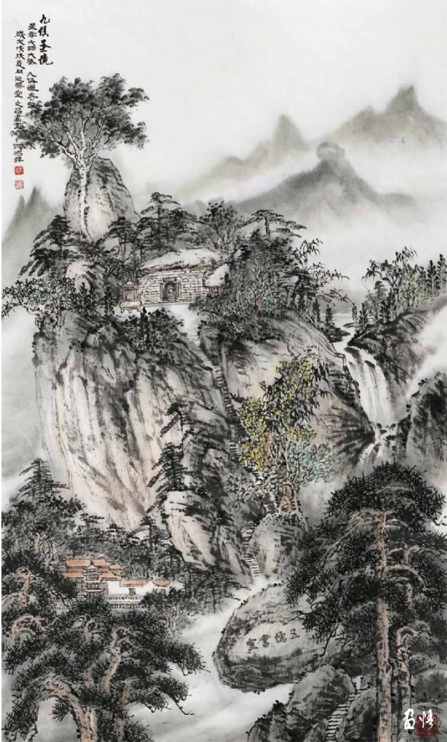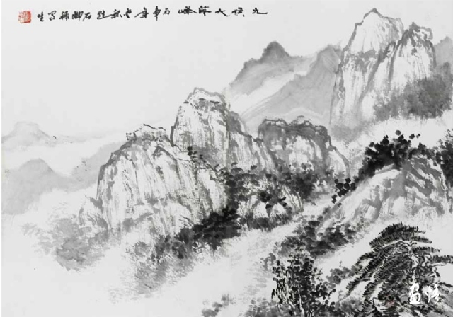 熱愛繪畫藝術(shù),真誠地對待藝術(shù)、人生,因此他的繪畫藝術(shù)一直在進(jìn)步,特別是他退休后所畫的山水進(jìn)入了一個(gè)新的境界。寫生小品頗能得自然靈氣而突破傳統(tǒng)構(gòu)圖模式,巨幅山水則渾厚大氣境界深遠(yuǎn)。以九侯山為代表的詔安風(fēng)光也在反復(fù)的描寫中出現(xiàn)新的格局,畫面呈現(xiàn)疏朗清新的氣韻,令人有清氣滿乾坤的感覺。當(dāng)然,這本畫集中的作品呈現(xiàn)了豐富的面貌,給人以多種格調(diào)、不同形式的美感,讀者可能各有喜愛,而我則最喜歡他后期畫的這些水墨山水。