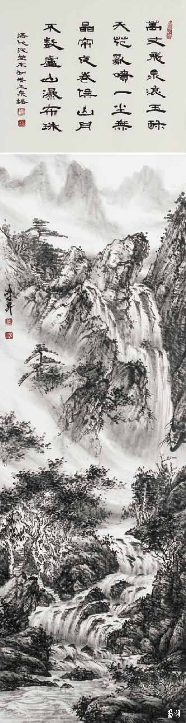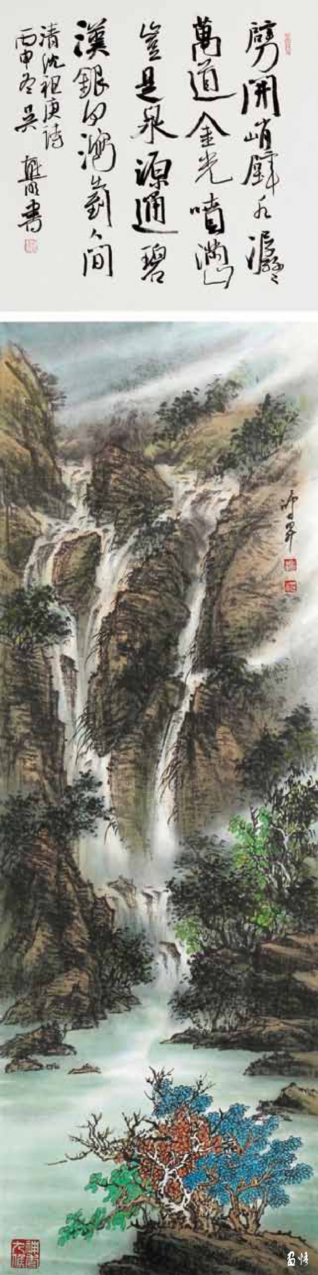 四條屏 龍泉飛瀑 102cm-34cm