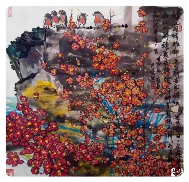 王彥俊的作品多以自我感受來體現(xiàn)旺盛的生命力,融油畫、水彩等技法、理念于作品中,崇尚色彩艷麗的奪目圖式,積極探索新中國畫的當(dāng)下表達形式,不拘泥于材料、樣式、傳統(tǒng)的束縛,努力體現(xiàn)自己的心靈個性,追求一種本我的審美訴求,張揚“畫無疆界,快樂自我”。他比較推崇林風(fēng)眠、黃永玉、李老十等老藝術(shù)家的思想以及新中國畫的理念,他認為在當(dāng)下的時代背景下不應(yīng)該定畫種,只要可以表達自己想要表達的東西即可。