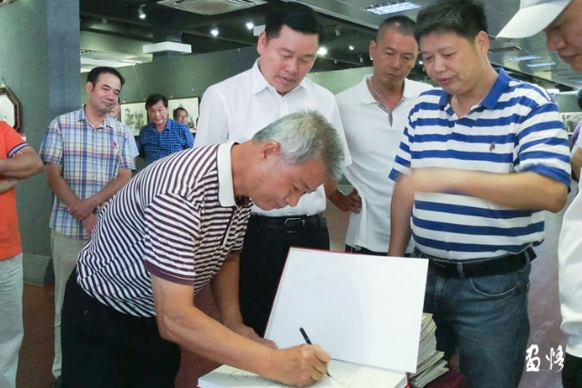 漳州市文聯(lián)副主席.書協(xié)主席黃坤生25日下午陪同漳州市委副書記.政法委書記阮開森參觀了畫展