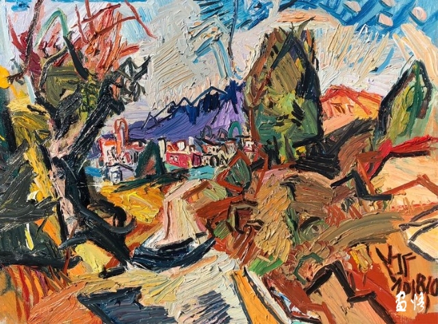 注重畫面內(nèi)在的結(jié)構(gòu)關(guān)系,以畫面色彩高級(jí)灰的搭配為主,講究畫面色彩品格,融入自己對(duì)線(隨性情與心情)獨(dú)到的認(rèn)知,他的線是書寫性的,但不是從書法和中國畫的途徑來的,而是隨著他寫生時(shí)的情感起伏與愉悅狀態(tài),有節(jié)奏和樂感的,有涂鴉特質(zhì)的線。他對(duì)寫生對(duì)象高度的概括與升華,色彩理性與敏銳的結(jié)合,線條是感性的情感起伏線,他同時(shí)善于在傾瀉繪畫過程中抓取有價(jià)值的眾多偶發(fā)而精彩的元素,他在寫生對(duì)象、畫布、與畫者之間有互通互融的忘我境界,從而生成的作品色彩、線條、氣韻、渾然天成,神采超群。這一切的形成與他近十年如一日對(duì)藝術(shù)追求的瘋狂狀態(tài)與刻苦鉆研有關(guān),與他表面溫和與苛求完美、內(nèi)在又有很強(qiáng)烈的"求異、逆反"的精神特質(zhì)有關(guān)(極端的雙重人格),他的畫更多的是對(duì)繪畫語言的探索,并有機(jī)的融入了自己獨(dú)特的體驗(yàn)與認(rèn)知,色彩的高級(jí)、穩(wěn)重正如他給常人感覺到的善解人意與他的寬容心,他的"線象"才是他內(nèi)在激烈情感、精神特質(zhì)的呈現(xiàn),作品整體品質(zhì)追求西式的高雅而又有東方審美情懷的視覺美感。他是一位奮不顧身投身藝術(shù)的虔誠者,藝術(shù)是修行一生的事,且行且精彩。常世江2018.1.30于北京