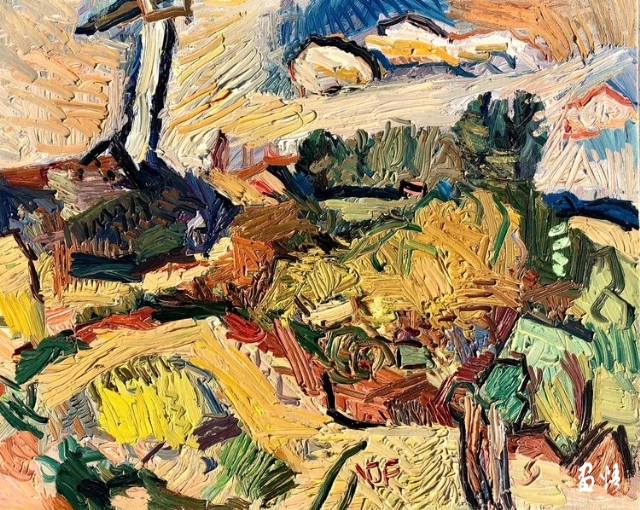 楊繼鋒寫生過程中的體驗(yàn),是一種書寫性的暢快。沒有過往牽絆,沒有憂思未來,只有此刻的豐盈!這種豐盈如同陽光下,飽飽的一粒谷子,圓的扣不住扣子,圓的沉甸甸的毫無棱角,圓的自己忍不住給自己一個(gè)帶著雙下巴的笑。但,又明晰自己正腳踏著實(shí)地,隨時(shí)落筆生花。