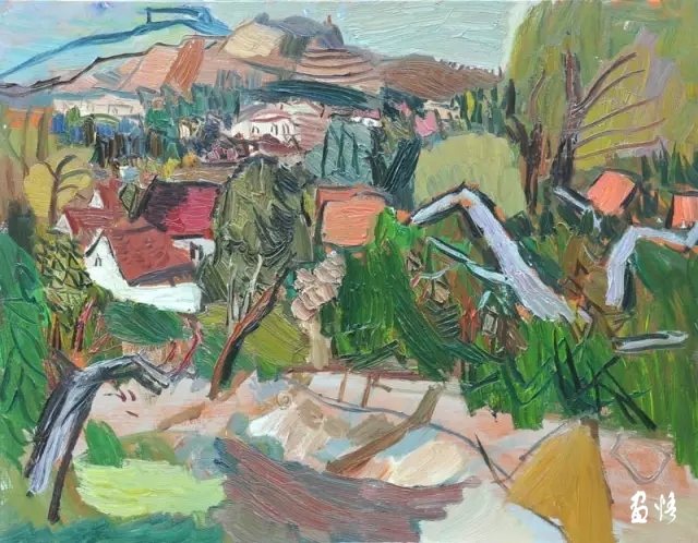 二是在克舉先生的指導(dǎo)下,他掌握了油畫(huà)寫(xiě)生的要領(lǐng),注重把握重點(diǎn),概括自然物象的形貌,形成富有節(jié)奏的畫(huà)面布局。他尤其抓住色彩表現(xiàn)力這個(gè)語(yǔ)言,在感受自然色彩的基礎(chǔ)上提高色彩的純度、明度和強(qiáng)度,將自然風(fēng)景的色彩關(guān)系轉(zhuǎn)換為畫(huà)面色彩的結(jié)構(gòu),以此為主導(dǎo)統(tǒng)攝畫(huà)面,形成以色彩為關(guān)鍵詞的敘事。在色彩的感性方面,他顯露出優(yōu)秀的秉賦。