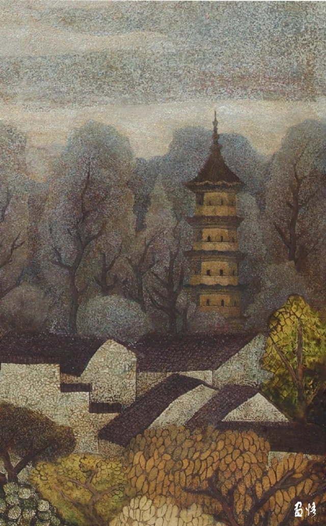 畫家也想用漆畫的語言,表現(xiàn)《易經(jīng)》中有非常著名的八個(gè)字:“天地氤氳,萬物化醇”。整幅畫面陰陽和諧,靜中有動(dòng),動(dòng)中有靜。氣宇軒昂,恢弘大氣。山和水;樹和風(fēng);建筑物和云霞霧靄,動(dòng)靜相宜,相得益彰;陰平陽秘,一陰一陽,隱喻中華民族的生生不息。 即“天地氤氳,萬物化醇”。