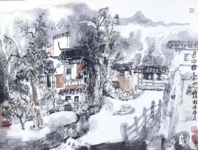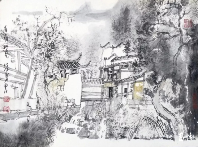?;菝竦膶懮矚g水墨方式直接對景作畫,水墨寫生較之硬筆速寫要求較高,也比較麻煩,但對于中國畫畫家來說,確是形、色、韻以及筆墨關(guān)系的一種很好的鍛煉。面對景物,一筆在手,從容舒展,取舍自如,豐富的水墨表現(xiàn)手法可以更真實地捕捉到景物的獨特形態(tài)和層次,線與面的融合,勾勒與涂抹,使畫面更富景物的節(jié)奏和韻味,尤其是山戀朦朧之態(tài)的微妙變化,樹木的蔥蘢連綿之致,更能表現(xiàn)的細(xì)致入微,淋漓盡致。