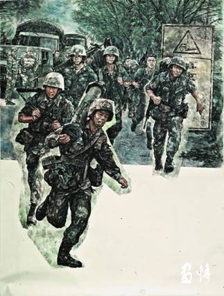 翟書同 《特戰(zhàn)神兵》材料:紙本設色 尺寸:176cm×220cm