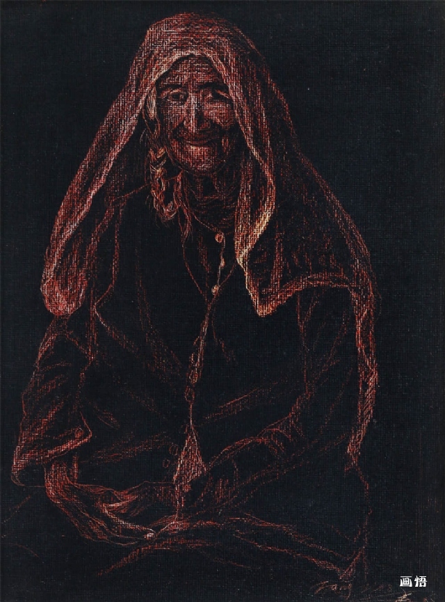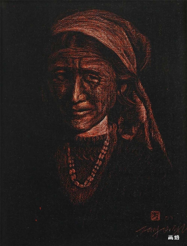 《塔吉克女人像》丙烯40x30布面油畫板2008年