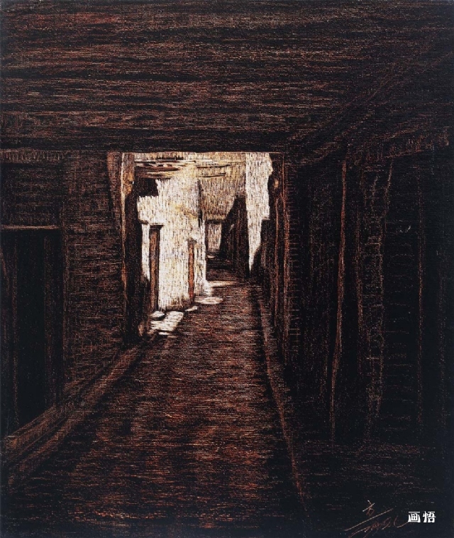 《深巷》丙烯50x40布面油畫板2008年