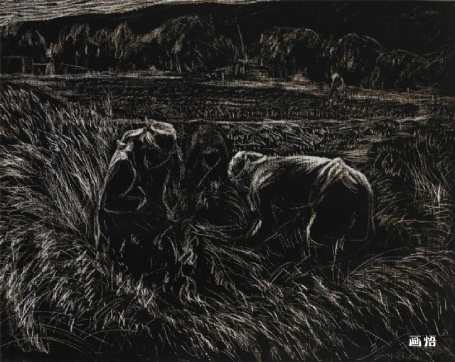 《收青稞》丙烯40x50布面油畫板2008年