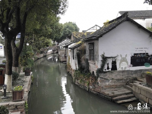 甪直很美,美麗成了一個(gè)簡(jiǎn)約的黑白世界。一座座橋,一彎彎水,一排排房屋,樣貌都是那么藝術(shù),仿佛是一幅幅珍藏了經(jīng)年的水墨畫卷。