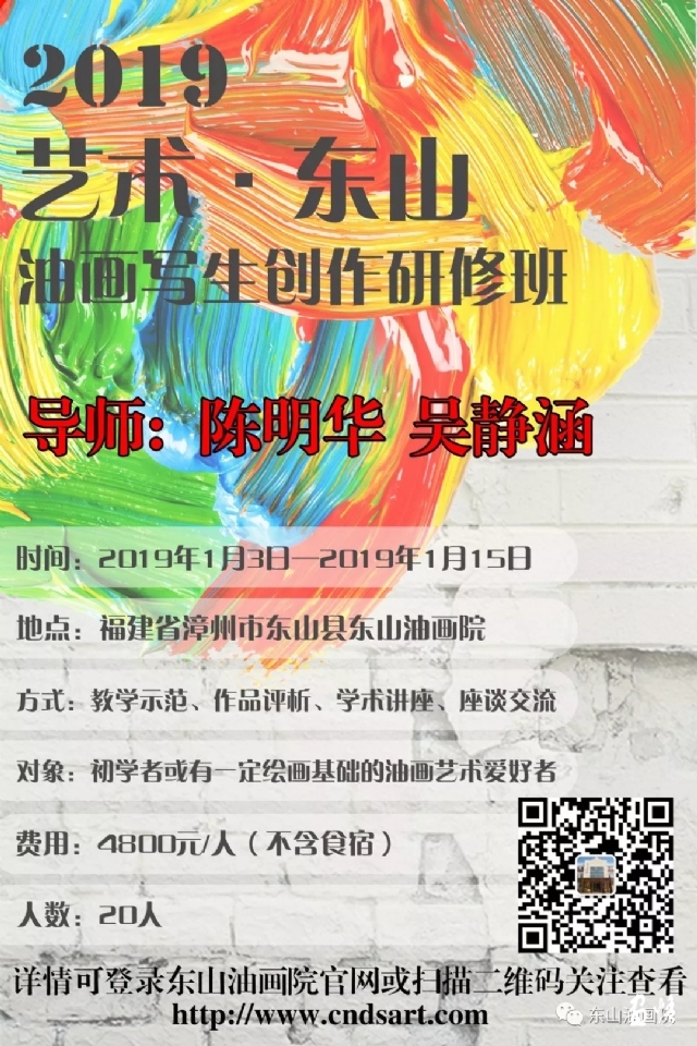 2019藝術(shù)東山油畫寫生創(chuàng)作研修班將于2019年1月3號(hào)—1月15號(hào)在中國(guó)·東山油畫院舉行。本期高研班以油畫藝術(shù)研究為宗旨。通過高端、系統(tǒng)的學(xué)習(xí),使學(xué)員了解高水平的油畫創(chuàng)作理念,在短期內(nèi)有效提升學(xué)員的藝術(shù)見解與油畫寫生能力及創(chuàng)作水平,積極吸收國(guó)內(nèi)外學(xué)員。