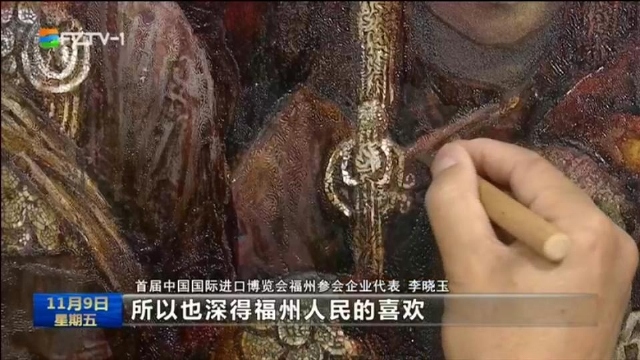 首屆中國國際進(jìn)口博覽會福州參會企業(yè)代表李曉玉:脫胎漆器是福州的三寶之一,漆畫這個工藝延續(xù)了脫胎漆器的手法和工藝,所以也深得福州人民的喜歡。這次非常高興它居然掛到了進(jìn)博會的會議中心。這幅畫就在畫福州,感覺非常親切。而且也覺得很值得向國際友人宣傳。