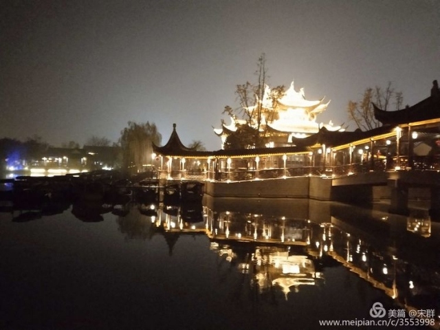 走過曲橋回廊,走過石子鋪就的小巷,眼前便又是一番景致,歡愉的目光里鋪滿了夜色的錦。