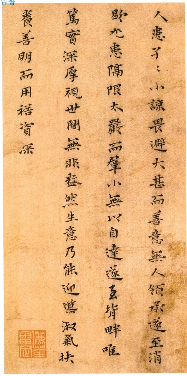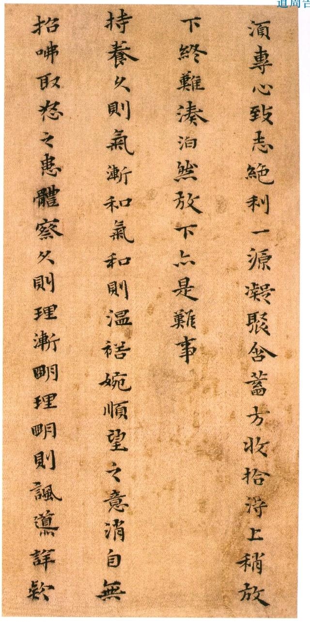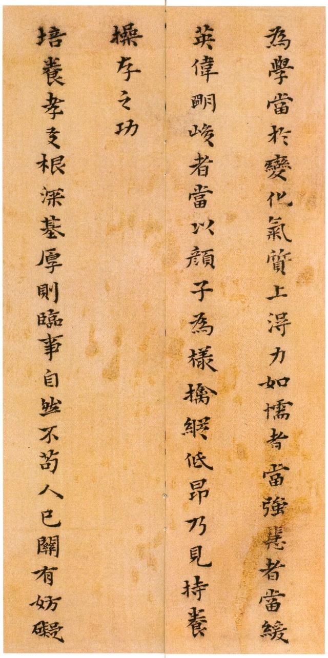 黃道周善楷、行、草諸體書,又工隸書。他的楷書,如《孝經(jīng)卷》、《張溥墓志銘》,字體方整近扁,筆法健勁,風(fēng)格古拙質(zhì)樸,十分類似鐘繇楷法。不同處是,鐘書于古拙中顯得渾厚,黃書則見清健,可以看到其受王羲之楷法的影響。