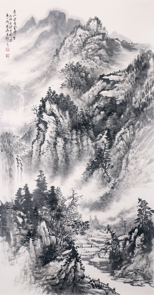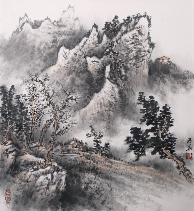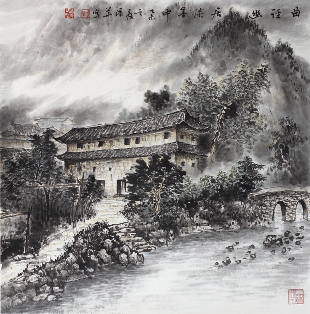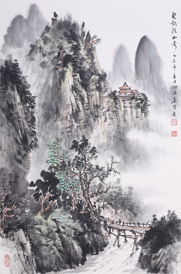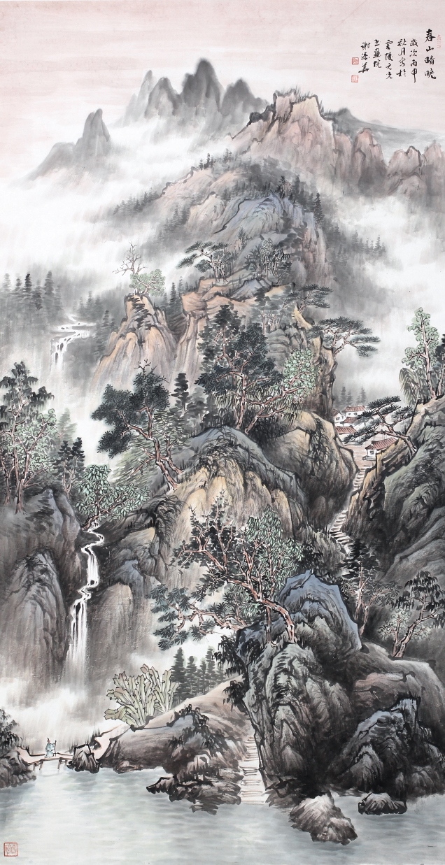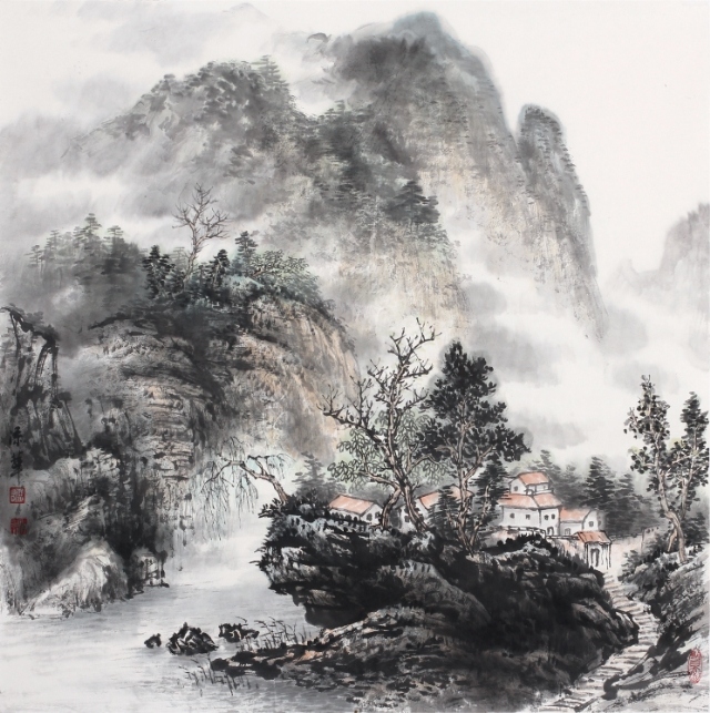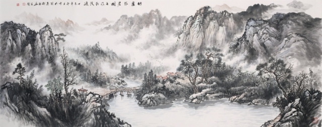 添華為人謙虛好學(xué),他立志“以自然為師,山水為宗”,覺得“草木固然可寓心;而惟山水能寄天下” 三十多年筆耕不綴,在硯田筆耘中艱苦勞作獲得豐碩收獲,其畫作日益精進(jìn),筆墨深厚清新,色調(diào)雅而不俗,其用毛剛?cè)嵯酀?jì), 蒼勁中透出柔美,其積墨皴點(diǎn)層層加染,渾厚又不失明快,在景象的刻劃里粗中見細(xì)。從作品的意境營(yíng)造中處處彰顯其扎實(shí)的傳統(tǒng)功夫??梢娞砣A在研究傳統(tǒng)技法學(xué)習(xí)古人花費(fèi)了不少汗水和心血,也取得了很高的成就。我國(guó)山水畫家陸儼少先生曾說過:〝師古人可省去很多力氣,這個(gè)借鑒有無,差異極大”,注重傳統(tǒng)是山水畫學(xué)習(xí)的捷徑,而這是對(duì)初學(xué)者。而另一位山水大家黃賓虹先生卻說:〝作畫當(dāng)以大自然為師,有胸有丘壑,運(yùn)筆便自如暢達(dá)矣!” 添華對(duì)傳統(tǒng)筆墨學(xué)習(xí)己有心得,若能再?gòu)膸熁訌?qiáng)對(duì)大自然的體驗(yàn), 多寫生,即象古人所說的行萬里路, 把對(duì)大自然的深化認(rèn)識(shí)溶入作品中,逐漸形成自己的風(fēng)格面貌,我相信他的成就將會(huì)更上一層樓,能創(chuàng)作出更多更好的作品。