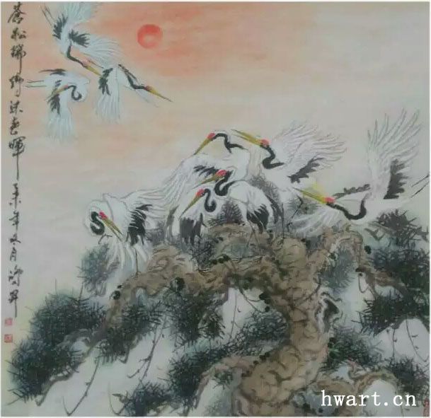 沈洪生鶴系列作品欣賞