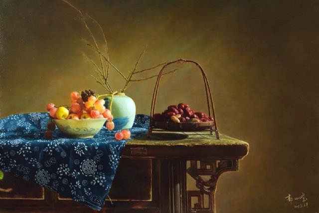 我側(cè)重于古典油畫靜物的藝術(shù)表現(xiàn),生活中和人息息相關(guān)的物件因?yàn)楦腥玖巳说臍庀⒑颓榫w,或?qū)庫(kù)o,或優(yōu)雅,或熾烈……