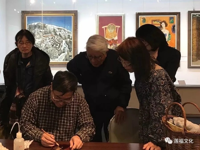 昨天下午活動現(xiàn)場觀眾氣氛熱情高漲,參加漆畫體驗(yàn)作者年齡段從十幾歲至七、八十歲愛好者,年齡跨度近六十年,每人非常認(rèn)真完成一幅心中所喜愛的圖像繪制,風(fēng)格多樣。繪制題材與形式顯示中日兩國文化的特點(diǎn),通過中國漆藝朮文化的體驗(yàn)課程,讓觀眾體驗(yàn)漆畫繪制讓他們表達(dá)出自己的心情同時還能夠提高自己對生活想象力和表達(dá)能力。能夠讓他們體會到友好生活的美好與快樂?!巴瓿梢环嫼笞约簳浅S谐删透?,我還簽上自己的名字A.l”八十歲老男生如小孩般神情讓人感動,也有東京藝術(shù)大學(xué)其它專業(yè)在校學(xué)生說:“看完這次漆畫精品展,對漆畫表現(xiàn)效果與材料質(zhì)感非常驚奇。特別感謝周教授傳授漆畫制作辛苦”。還有井岡今日子漆友說利用閑暇時間圓自己童年繪畫夢想。最后全部漆畫體驗(yàn)作者展示自己親手完成小作品與周榕清教授合影留念。今天在日中友好美術(shù)館和蓮福美術(shù)館攜手舉辦漆畫精品展覽與漆畫體驗(yàn)又一見證中日友誼長存。