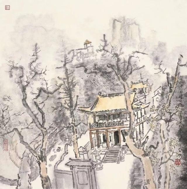 中國(guó)畫(huà)創(chuàng)作的來(lái)源于寫(xiě)生,但寫(xiě)生并不等于創(chuàng)作。大自然造化的無(wú)限空間給?;菝裉峁┝巳≈槐M,用之不竭的創(chuàng)作源泉,寫(xiě)生和體驗(yàn)為他的創(chuàng)作積累了豐富的素材,親歷其境,在大自然中遨游大大提升了他創(chuàng)作的激情和靈感,但要使自己的創(chuàng)作達(dá)到“物色盡而情有余”的境界,就需要自己不僅要善于捕捉所感知的物象形態(tài)特征,還必須融入自我的心理感受,以及藝術(shù)格調(diào)的追求乃至筆墨的表現(xiàn)形式等諸多因素。?;菝竦膶?xiě)生喜歡水墨方式直接對(duì)景作畫(huà),水墨寫(xiě)生較之硬筆速寫(xiě)要求較高,也比較麻煩,但對(duì)于中國(guó)畫(huà)畫(huà)家來(lái)說(shuō),確是形、色、韻以及筆墨關(guān)系的一種很好的鍛煉。面對(duì)景物,一筆在手,從容舒展,取舍自如,豐富的水墨表現(xiàn)手法可以更真實(shí)地捕捉到景物的獨(dú)特形態(tài)和層次,線(xiàn)與面的融合,勾勒與涂抹,使畫(huà)面更富景物的節(jié)奏和韻味,尤其是山戀朦朧之態(tài)的微妙變化,樹(shù)木的蔥蘢連綿之致,更能表現(xiàn)的細(xì)致入微,淋漓盡致。