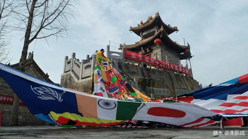 把這個世界上除了咱中華人民共和國的國旗之外的其他很多國家的國旗剪開,破壞,再用這些碎片拼湊成一面暫且叫“萬國旗”的新玩意來,不知道這個作為禮物送給聯(lián)合國,會不會作為聯(lián)合國旗被升起在聯(lián)合國大廈前面?并不是朱新戰(zhàn)不想把中國國旗納入他的行為作品中去,而是咱的國旗有神功護體,朱新戰(zhàn)的功力不夠,對它下不了手,實在只能望旗興嘆也!