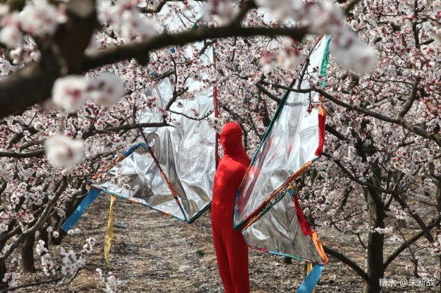 驚蟄之后,龜蛇出洞。有一只蝴蝶已經(jīng)人面桃花相映紅,“破繭而出”、“羽化成蝶”、這是藝術(shù)家~朱新戰(zhàn)。