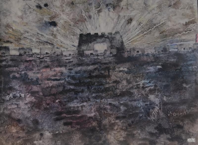 崔治中畫的長(zhǎng)城不是常規(guī)意義上我們理解的長(zhǎng)城了,肌理效果和全新的刻畫方式已經(jīng)很不重要了,他不再糾纏于畫什么,怎么畫這些形而下的形式問題,而是擔(dān)負(fù)起了人是什么?如果可能?人的存在的本質(zhì)和其還沒有被創(chuàng)造的那部分如何去呈現(xiàn)這些形而上的追問和實(shí)踐。人就是時(shí)空中飛行的箭簇,從未靜止,所有經(jīng)過的時(shí)空已經(jīng)拋在身后,并讓人成為今天的人。而人由過去的歷史,當(dāng)下的現(xiàn)實(shí)和未來的可能性共同構(gòu)建起來,沒有歷史我們成為不了今天的人,沒有未來的可能性我們失去了存在的必要性。