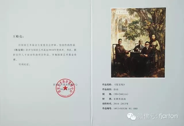 王裕亮油畫作品《陳寶琛》榮獲國家藝術(shù)基金2016年度美術(shù)、書法、攝影創(chuàng)作人才滾動(dòng)資助項(xiàng)目。