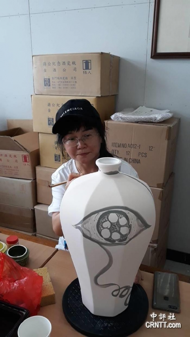 余鍵也曾多次參與臺(tái)灣藝術(shù)研究院的駐村創(chuàng)作,在金門彩繪出獨(dú)一無二的金酒瓷瓶,她在瓷瓶上的創(chuàng)作以裝飾性的線條畫出花、魚、身體和水等女性主義元素,溫柔婉約,傳達(dá)出彩墨畫中樸素、淡雅的本質(zhì)。