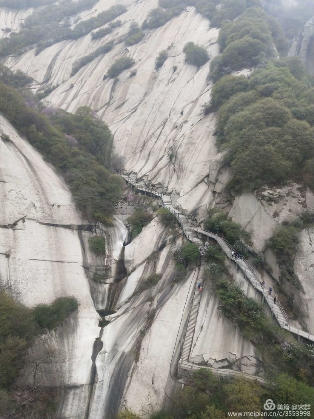 遠(yuǎn)遠(yuǎn)便瞅見了華山,破云而出的你,沖出華陰,沖出渭南,又沖出了秦嶺山脈,你像是一個山神又像是一位巍峨霸氣的長者,擎天立地的守護(hù)著一方水土。在我的眼里變成了另一個視角,你視乎變得溫情了許多,刀削斧劈的山脈變成了畫面,光潔的山體是山的留白,細(xì)細(xì)窄窄陡峭挺拔的山路,恰好是貫穿畫面的主線,縱深山頂。一叢叢墨綠色的松柏和植被依偎著山體,偶然像一個個莊嚴(yán)的衛(wèi)士。