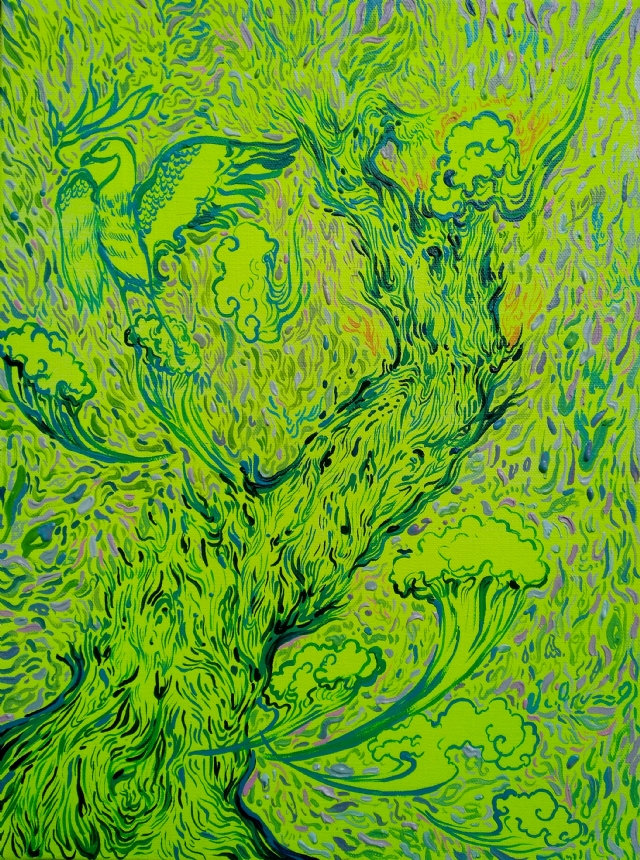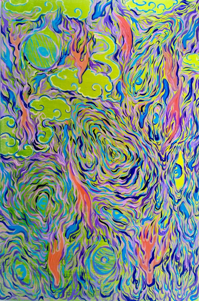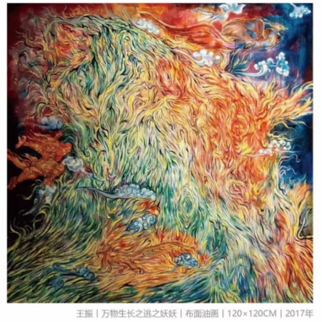 以前,老師說要從具像中看到抽象,從抽象中感受到情緒。王振的這批系列作品,完整的從情緒里反饋出抽象,從抽象中獲得具象,我的想象力因此獲得了圓滿。