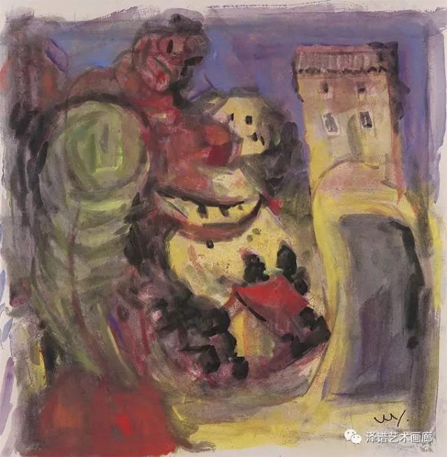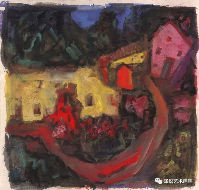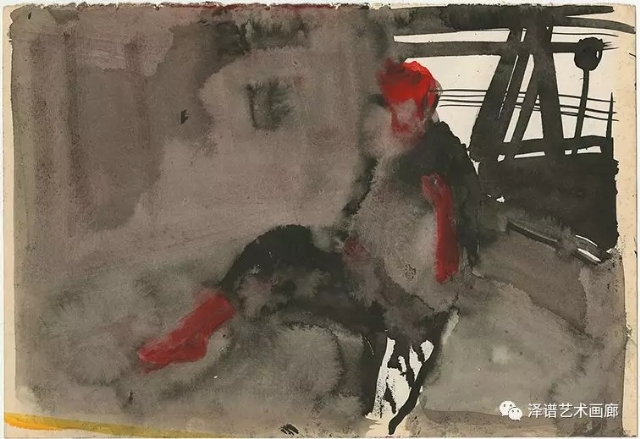 在他水彩作品的畫法中將水分的意味發(fā)揮到極致,使水與色達到真正飽和交融的狀態(tài)。傳統(tǒng)西方水彩畫中,水只起到調(diào)節(jié)色彩濃淡度的作用,以表現(xiàn)色彩為主,水分的藝術(shù)效果并不明顯。而在他的水彩作品中,由于受到傳統(tǒng)水墨畫的影響,將水以色彩的形式表現(xiàn)出來,并且添加了以墨色破墨色的藝術(shù)效果,形成了酣暢淋漓的視覺效果。