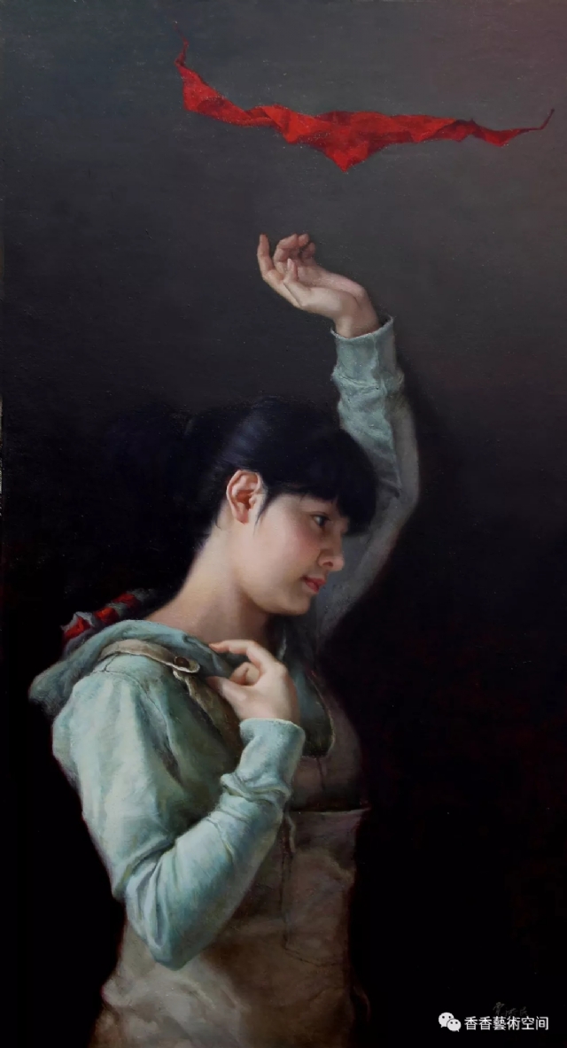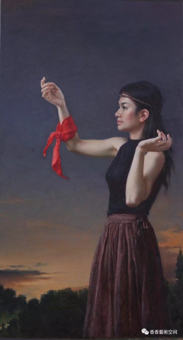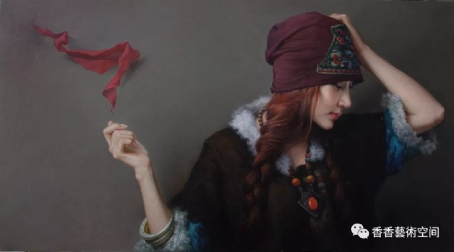 賈洪民《紅妝離塵寄語(yǔ)思》100x150cm布面油畫(huà)2014年