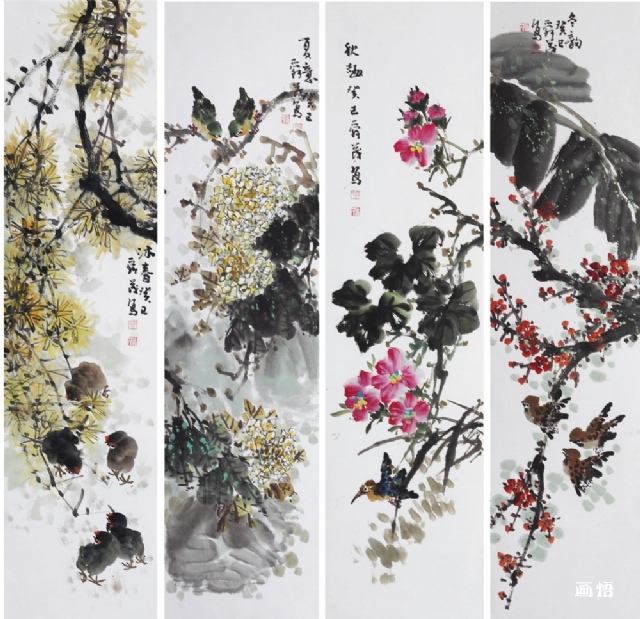 《春意盎然》四條屏