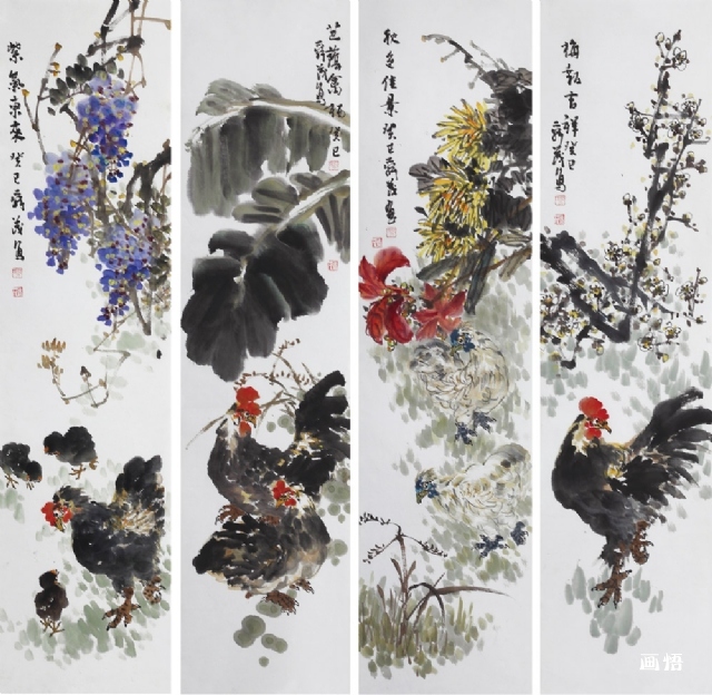 花鳥四條屏